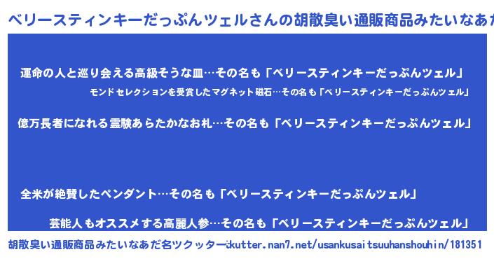 | ヘコむあだ名 | 『ベリもー』『酢こんぶ』『ベリを』 |