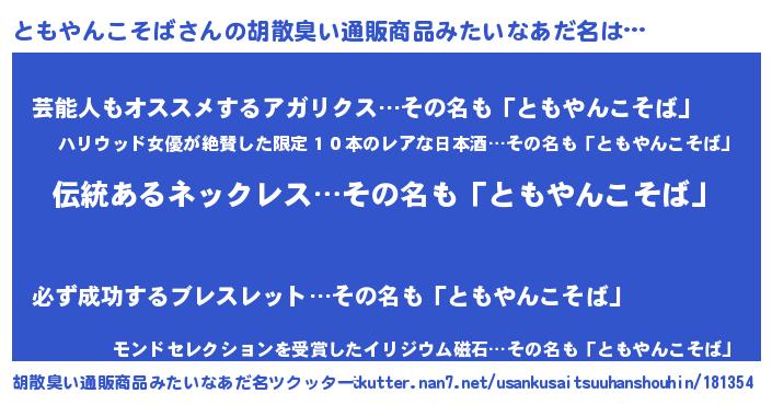 ともやんこそばさんの胡散臭い通販商品みたいなあだ名をツクッター!