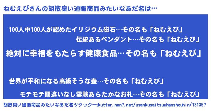 | ヒーロー風カッコイイあだ名 | 『ネオネムエビ』『友情の使者ねむえび』 |