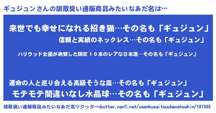 | 意味不明あだ名 | 『住所不定無職ギュジュン(47歳)』 |