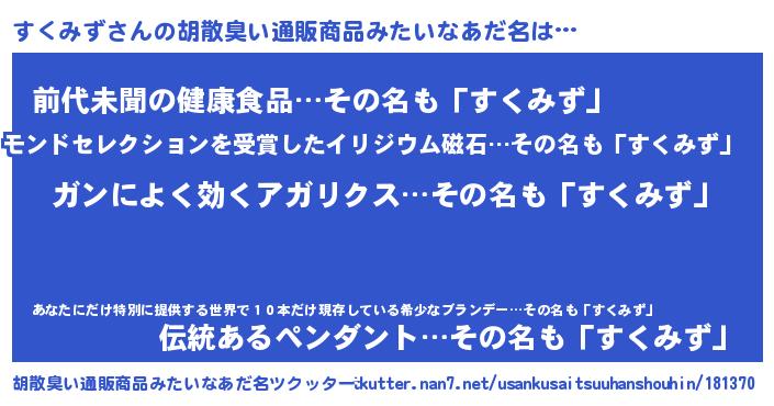 | 意味不明あだ名 | 『自称すくみず』『永久保存すくみず』 |