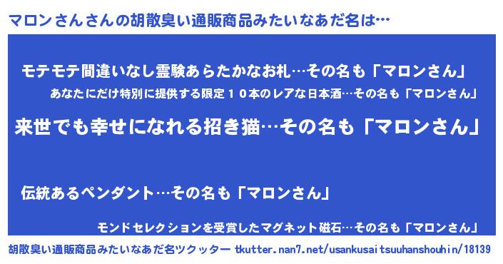 | ヒーロー風カッコイイあだ名 | 『ネオマロンサン』『スーパーマロンサン』 |