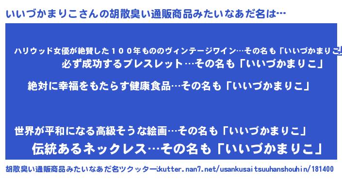 | 男性向けラノベタイトル風あだ名 | 『いいづかまりこという概念が存在しない退屈な世界 』 |