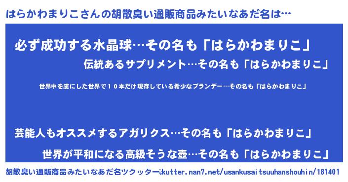 | 男性向けラノベタイトル風あだ名 | 『転生したらはらかわまりこだった件』 |