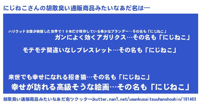 | 意味不明あだ名 | 『ペロリンにじねこ』『自称にじねこ』 |