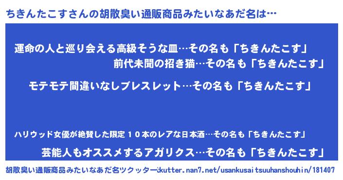 | 肩書あだ名 | 『ちきんたこすCEO』『ちきんたこす少佐』 |