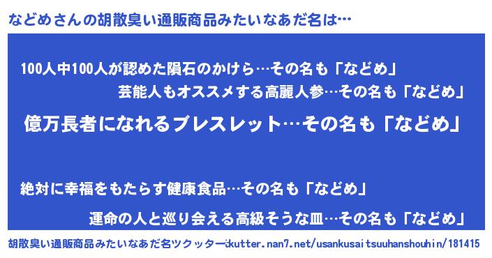 | ヒーロー風カッコイイあだ名 | 『スーパーナドメ』『天空の使者などめ』 |