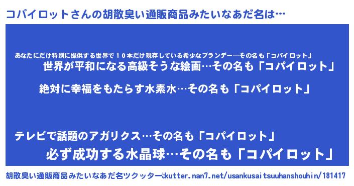 | 意味不明あだ名 | 『永久保存コパイロット』 |