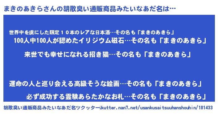 | 意味不明あだ名 | 『永久保存まきのあきら』 |