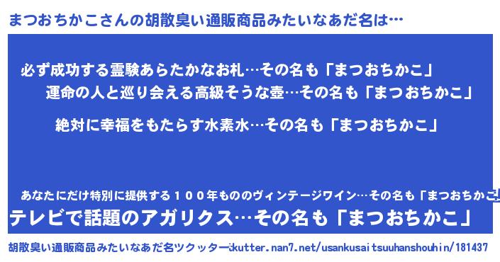 | ヘコむあだ名 | 『まつおちかこ(苦笑)』『まつっふぃ~』 |