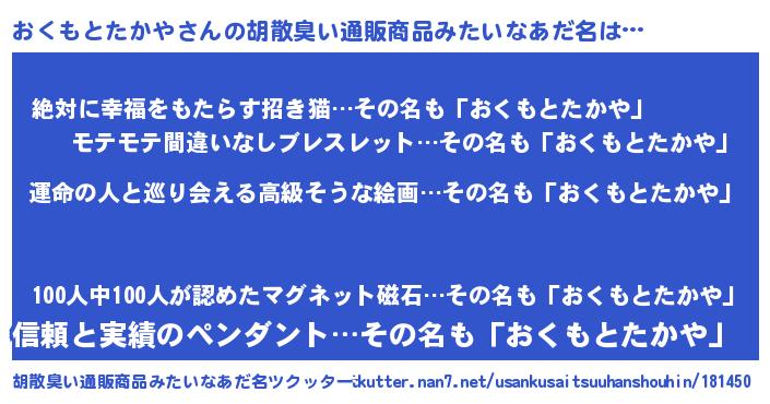 | 欧米人風あだ名 | 『おくもとたかやクリステル』 |