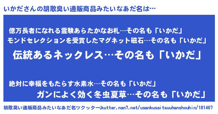 | 欧米人風あだ名 | 『ウサインいかだ』『トリンドルいかだ』 |