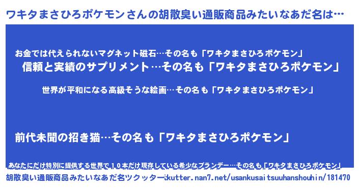 | ファンタジー風あだ名 | 『エターナルワキタマサヒロポケモンー』 |