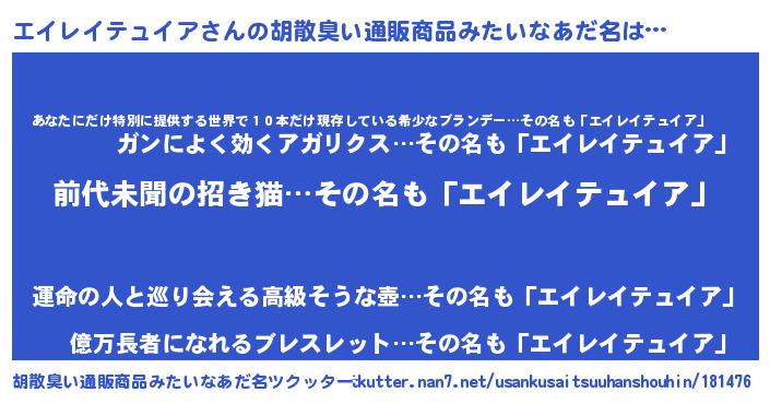 | 意味不明あだ名 | 『永久保存エイレイテュイア』 |