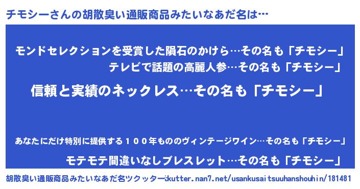 | 意味不明あだ名 | 『とにかく怪しいチモシー』 |