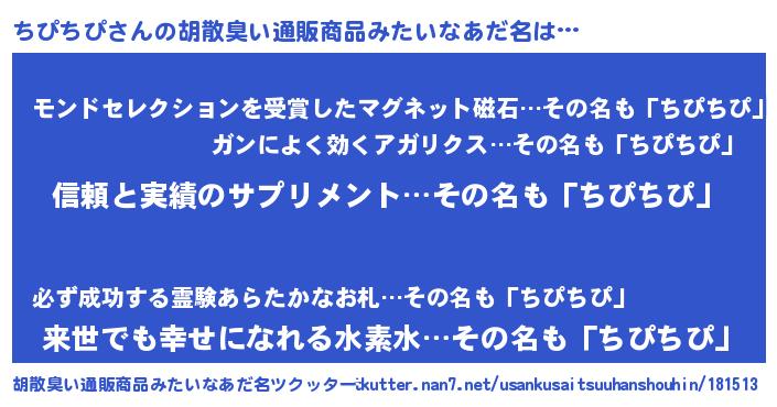 | 意味不明あだ名 | 『とにかく怪しいちぴちぴ』 |