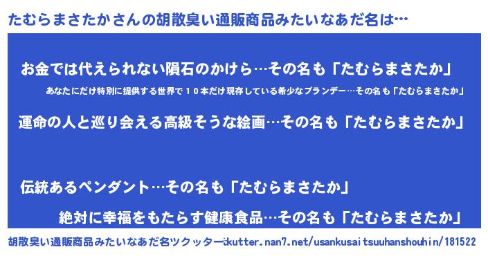 | 肩書あだ名 | 『たむらまさたか総理大臣』 |