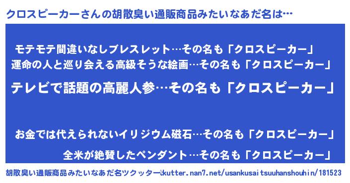 | 意味不明あだ名 | 『自称クロスピーカー』 |