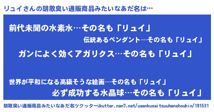 | ヘコむあだ名 | 『リュイ(爆)』『リュっふぃ~』 |