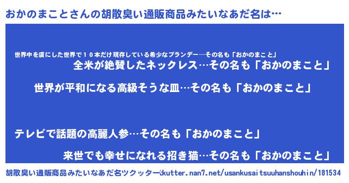 | 欧米人風あだ名 | 『おかのまことクリステル』 |