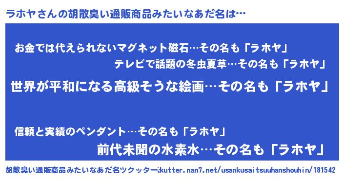 | ポケモン風あだ名 | 『ラホヤダネ』『ラックウザ』 |