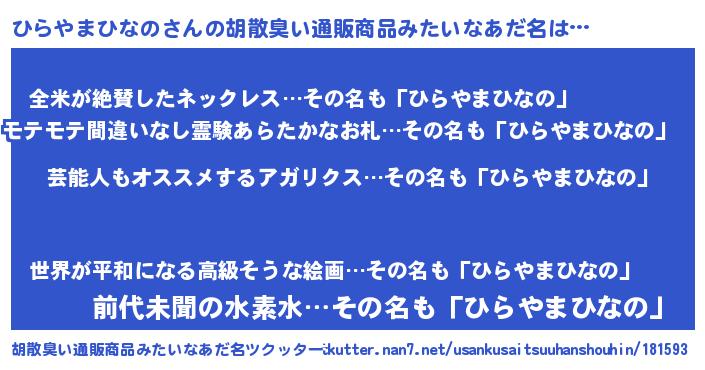 | 意味不明あだ名 | 『自称ひらやまひなの』 |