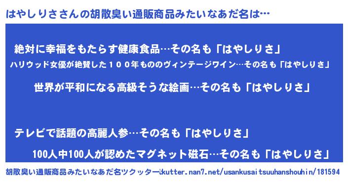 | 意味不明あだ名 | 『はやしりさフォーエバー』 |