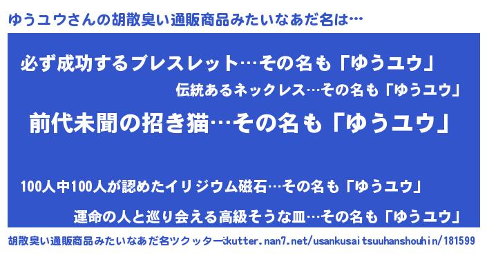 | 意味不明あだ名 | 『永久保存ゆうユウ』『ペロリンゆうユウ』 |