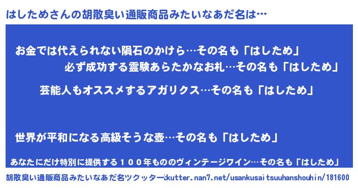 | ヘコむあだ名 | 『はしにゅー』『なまこ酢』 |