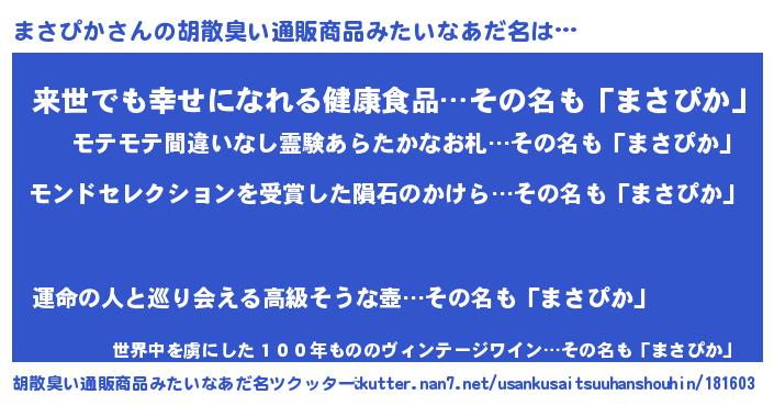 | 欧米人風あだ名 | 『ダニエルまさぴか』『マイケルまさぴか』 |