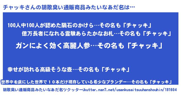 | 意味不明あだ名 | 『自称チャッキ』『ペロリンチャッキ』 |