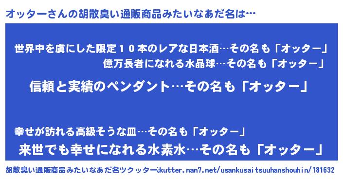 | 意味不明あだ名 | 『とにかく怪しいオッター』 |