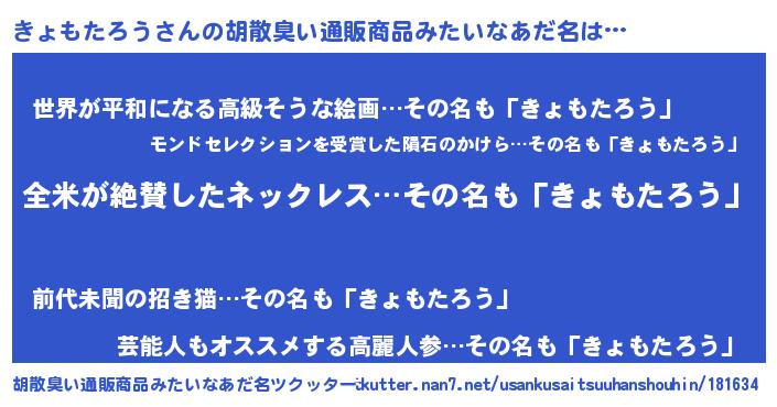 | 意味不明あだ名 | 『とにかく怪しいきょもたろう』 |