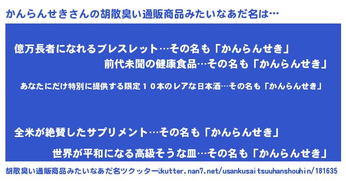 | 意味不明あだ名 | 『住所不定無職かんらんせき(47歳)』 |