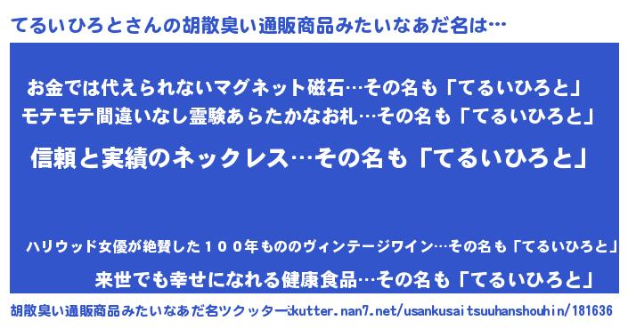 | ヘコむあだ名 | 『てる太郎』『てるいひろと(小並感)』 |