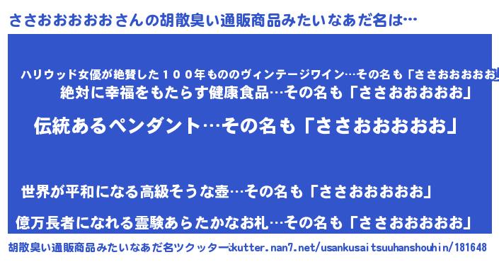 | 意味不明あだ名 | 『とにかく怪しいささおおおおお』 |