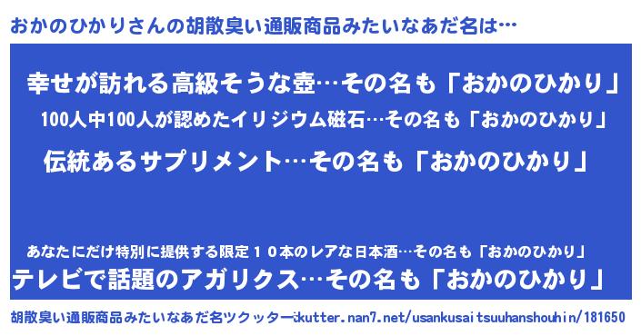 | ヒーロー風カッコイイあだ名 | 『幻影騎士オカ』『最強戦士オカノヒカリ』 |