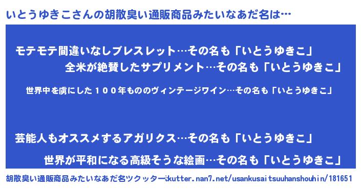 | 意味不明あだ名 | 『住所不定無職いとうゆきこ(4歳)』 |
