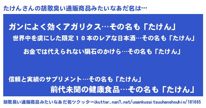 | 意味不明あだ名 | 『眠気覚ましガムたけん味』『自称たけん』 |