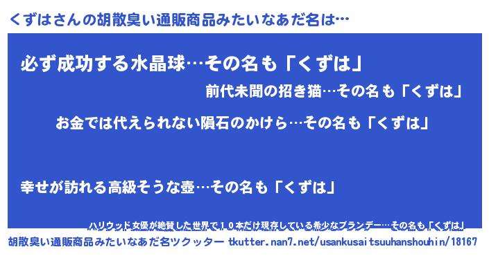 | 欧米人風あだ名 | 『ダニエルくずは』『アンジェラ・くずは』 |