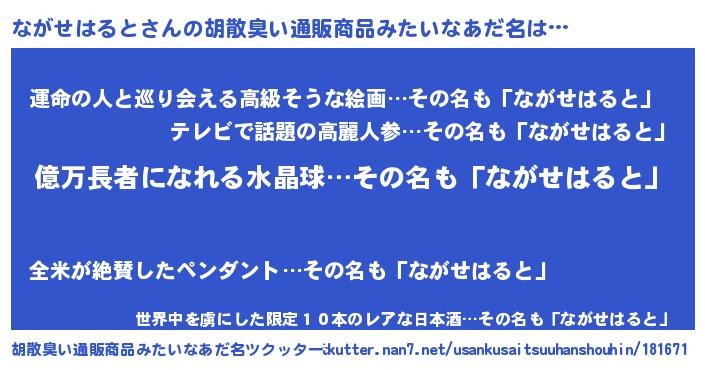 | 伝説のあだ名 | 『封印されし傭兵ながせはると』 |