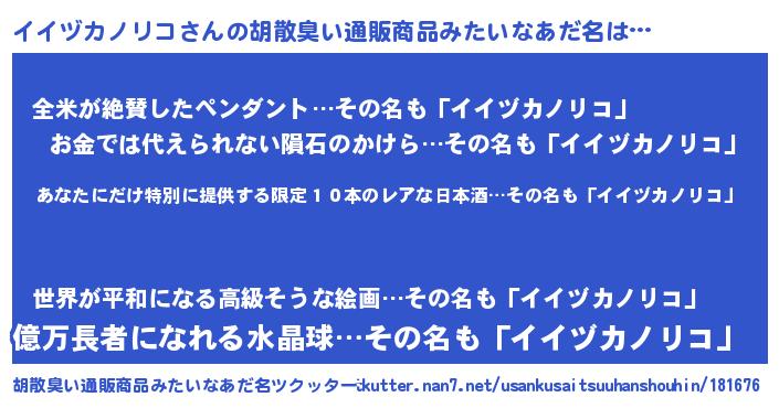 | 欧米人風あだ名 | 『ダレノガレイイヅカノリコ』 |