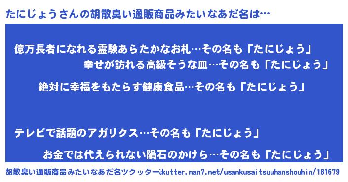 たにじょうさんの胡散臭い通販商品みたいなあだ名をツクッター!