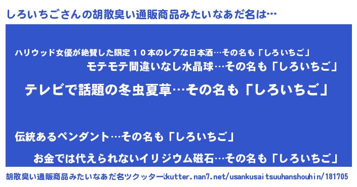 | 意味不明あだ名 | 『自称しろいちご』『ペロリンしろいちご』 |