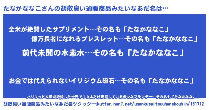 | 意味不明あだ名 | 『永久保存たなかななこ』 |