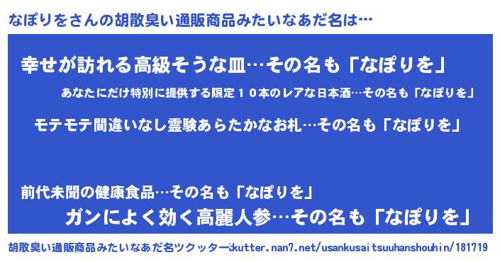 | 男性向けラノベタイトル風あだ名 | 『なぽりをの憂鬱』『緋弾のナポリヲ』 |