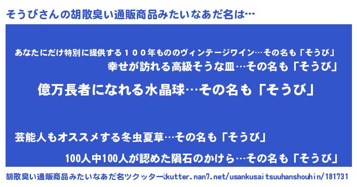 | ピコ太郎風あだ名 | 『ソコ五郎』『ソソ太郎』『ピソ十郎』 |