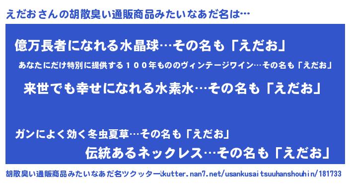 | 意味不明あだ名 | 『永久保存えだお』『ペロリンえだお』 |