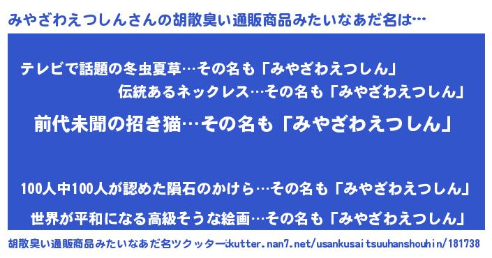 | 意味不明あだ名 | 『永久保存みやざわえつしん』 |