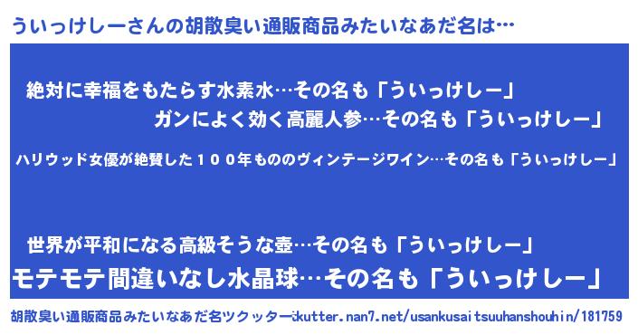 | 意味不明あだ名 | 『住所不定無職ういっけしー(9歳)』 |